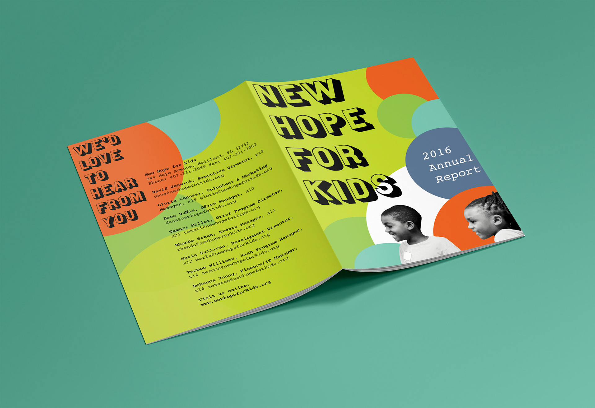 an annual report design for the non-profit agency, new hope for kids.